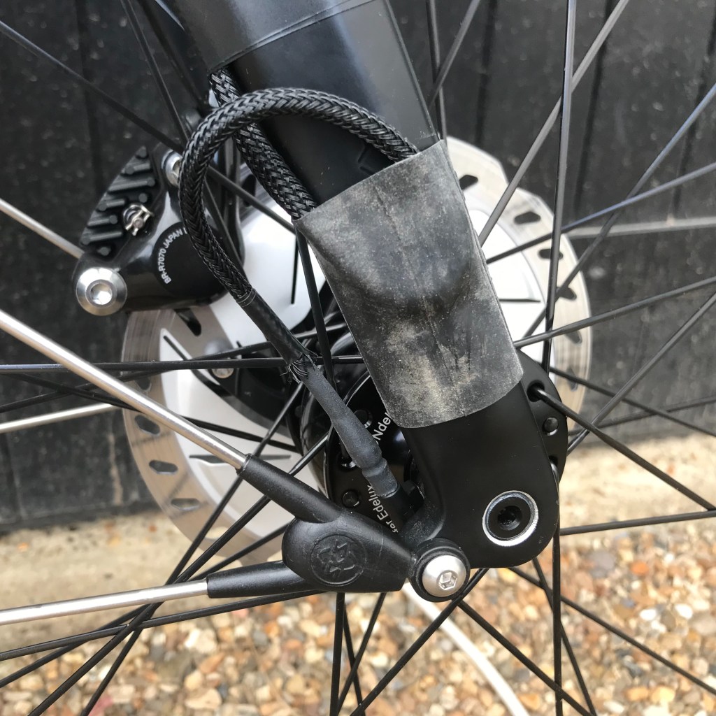 Finally be aware that SON supply their front lights with a few different cable options. I am completely rubbish at soldering so I wanted to avoid anything that required flux to be melted. Hence I chose one that was pre-wired with the necessary plugs to connect to the Dynamo. The only downside was that with the plug fitted I could not run the cable down the hole inside my fork intended for just that purpose. Drat and double drat. So the cable is tapped to the outside of my fork just like every other installation you will see.
