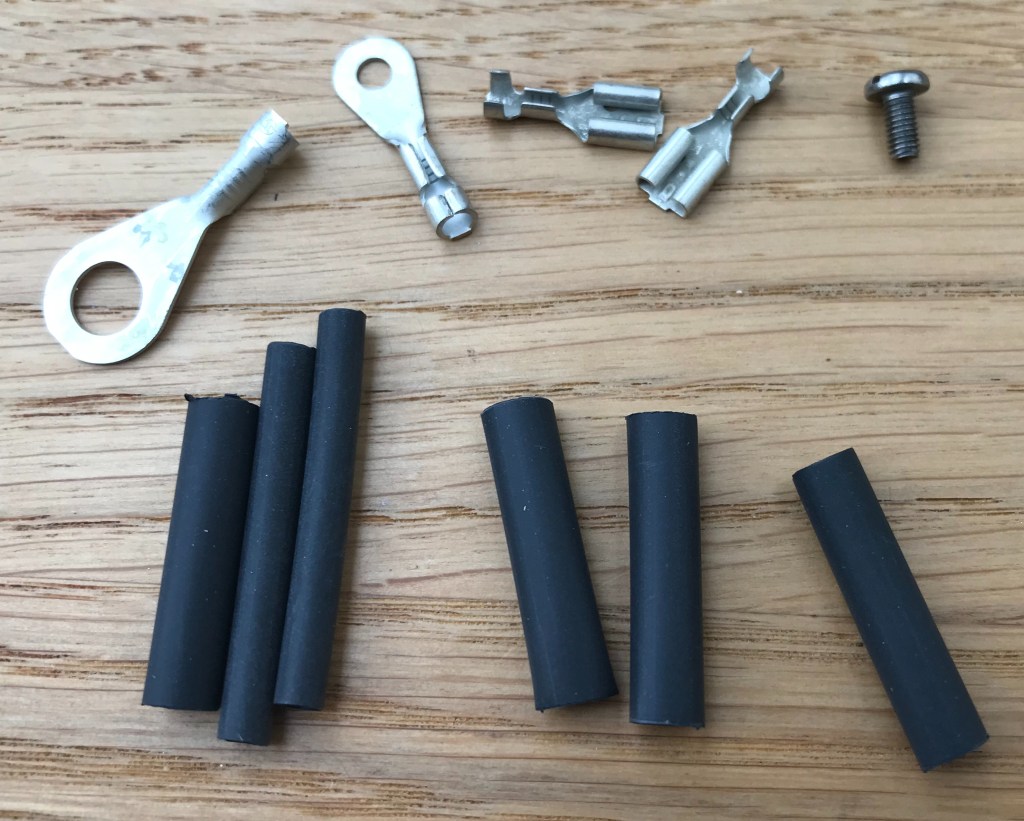 The rear light comes with an unterminated cable, there are no options here. However since the connections are made with crimp-on spade connections the good news is that no soldering is required. Phew. In the packet you get some mounting screws, the necessary spade connections and some heat shrink tubing to seal the connections.